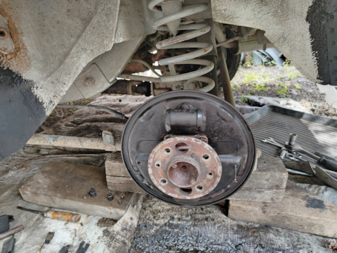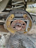 Под замену попали: трос ручника, задние колодки и рычаг стояночного тормоза.