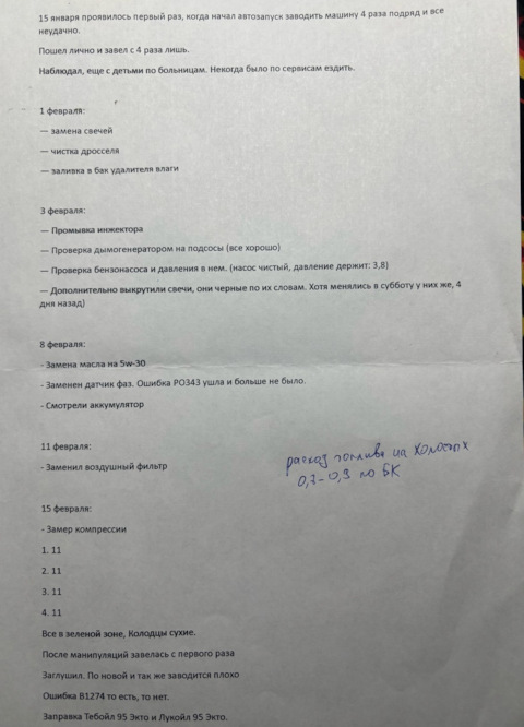 Еще при покупке авто спрашивал у предыдущего владельца, что делал и что еще предстоит сделать.