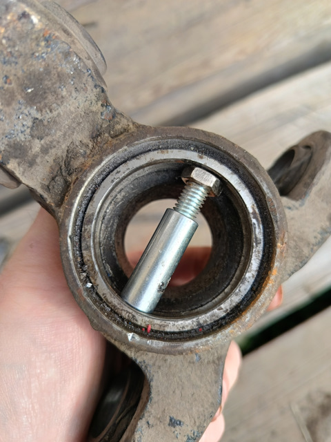 Поменял шаровую опору с левой стороны. Хотел без снятия рычага, но не смог выбить, пришлось всё же снимать. Шаровую поставил 555. До этого в сервисе ставили вроде Линкс — отходила где-то пол года и т…