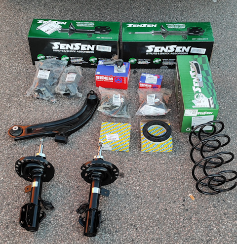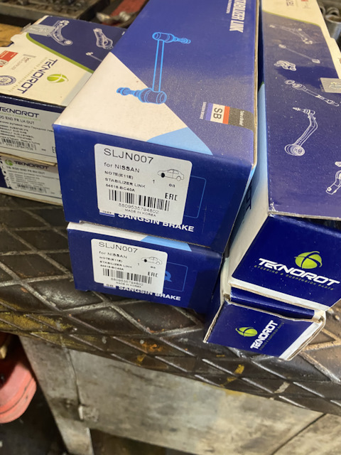 Дело было еще в середине мая. Купила новые пружины, рулевые наконечники, рулевые тяги, стойки стабилизатора и ступичный подшипник.