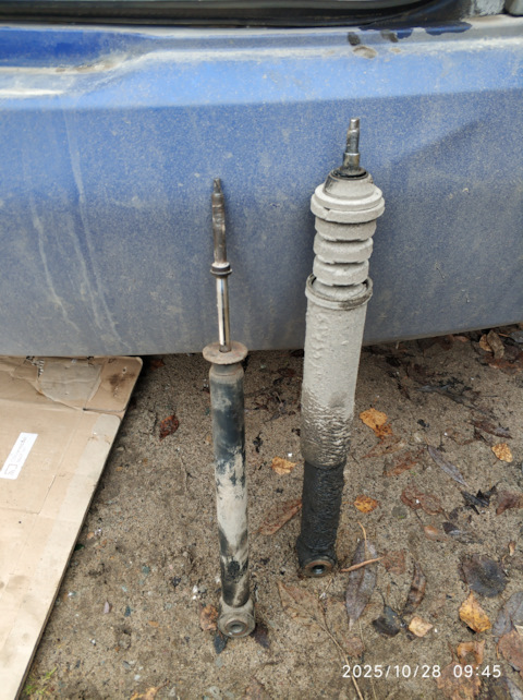 Потёк задний левый амортизатор. Менял его в октябре 2023г., пробег был 191000км. Сейчас 210826км. Соответственно амортизатора хватило почти на 20 тыс.км. и на 2 года. Амортизатор стоял фирмы hola SH4…