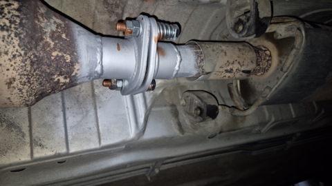 Ставим новое кольцо выхлопной трубы у коллектора приемной трубы и после каталиков ближе к резонатору перевариваем соединительный узел, так как там не поменя…