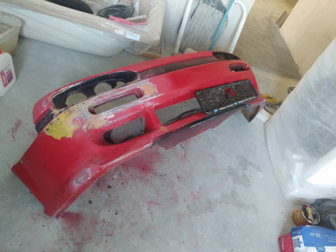 Сегодня приступил к ремонту бампера, изначально убрал второе трио супер фар, правда намучался, потому что было сделано на совесть, смола волокно и сетка металическая.