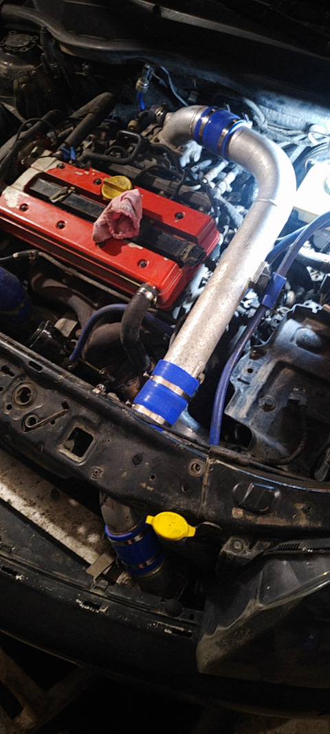 Система охлаждения на машине по всей видимости давно не обслуживалась и даже была небольшая течь в районе правого патрубка. Антифриз тоже был стремный.