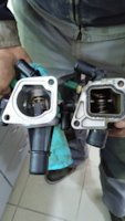 Давно понимал, что термостат не работает. К тому же подтекали патрубки к и от печки. Пришло время поменять. Купил термостат Vernet, антифриз Sintec, патрубки Metalcaucho. Оставил машину на сервисе, с…