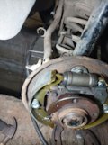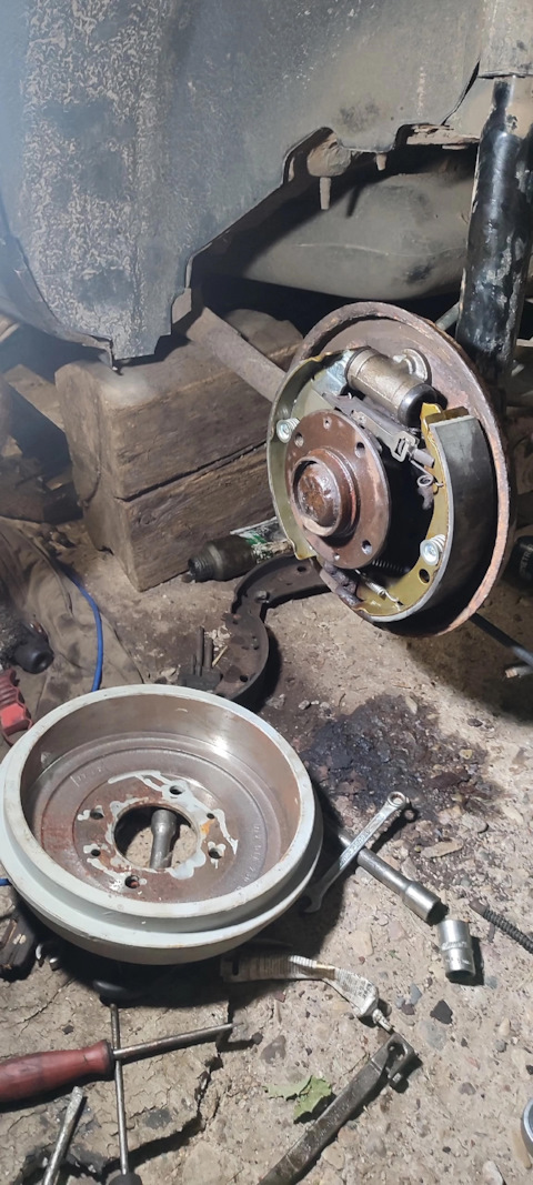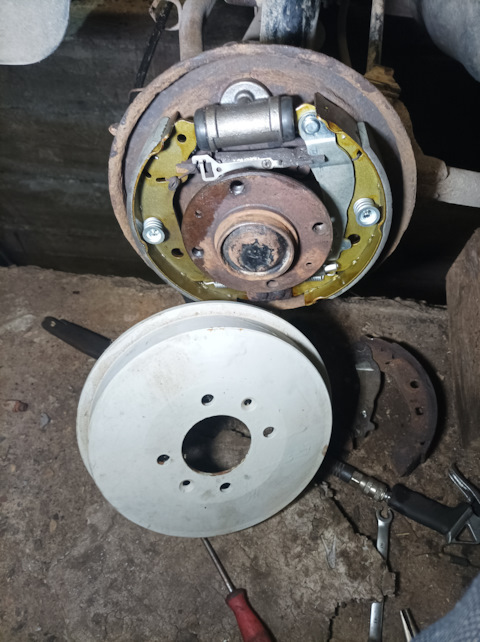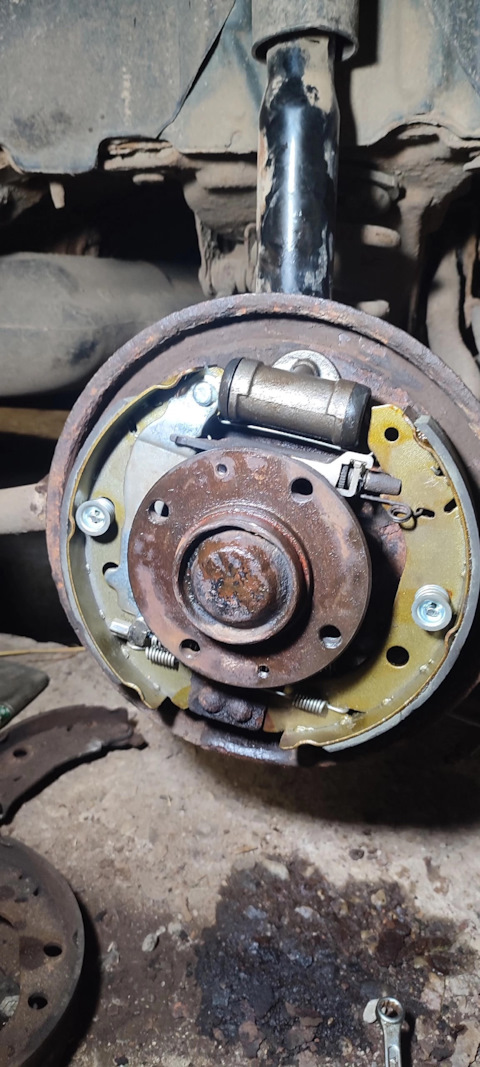 Приветствую парни, добрался до правой стороны. Эта сторона пошла легче в ремонте, барабан слез легко. Аналогично левой стороне, ставим все новое: барабан, поршень, колодки, тарелки, гвоздики, пружинк…