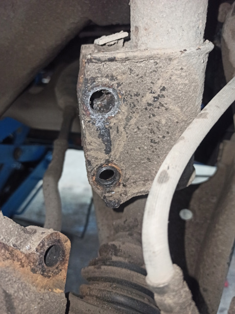 Развал справа стал положительным (+1°24') — поехал сверлить передний правый амортизатор по аналогии с левым. Только на левом в другую сторону надо было заваливать колесо, поэтому сверлили не нижнее о…
