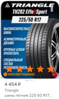 На лето приобрёл новую резину Triangle TH202 в размере 225/50 17 по очень хорошей цене, взамен старой летней Goodyear Eagle F1 в размере 225/45 17.