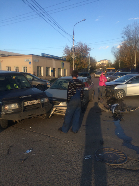 Всем мир) везет мне как утопленику, 6 ДТП, где я пострадавший за 4 года. Ехал прямо по крайней правой (направо или прямо, всего 2 полосы), левая занята очередью на поворот, проезжаю перекрёсток и муж…