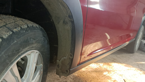 Давно задумывался над необходимостью установки передних брызговиков, но ни как не приходила картинка, как это сделать. Сегодня наткнулся на брызговик под верстаком, который когда то ездил на японском…