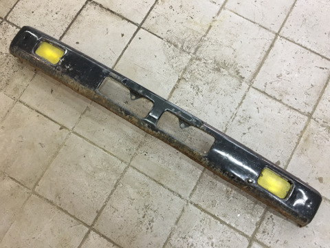 Заменив задний номер на квадратный я хотел произвести то же самое спереди, но там обнаружились трудности. Начнём. Бампер был окрашен чёрной краской в деревне как и вся рама, множество вмятин и царапи…