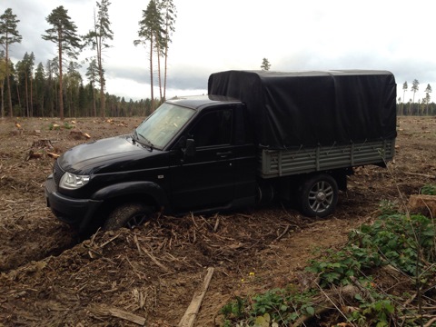 Нужно было заехать на поле, образовавшееся после вырубки деревьев.