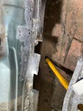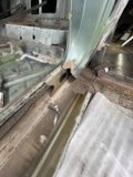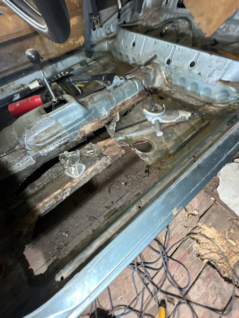Начал потихоньку вырезать водительскую сторону. Высверлил поперечину и одну салазку у туннеля под сидуху.