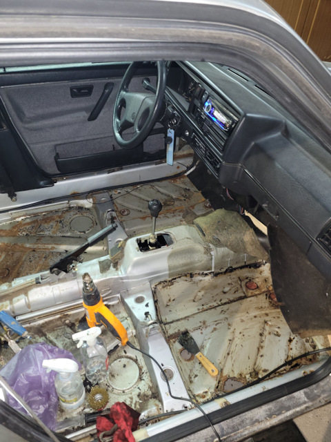И вот все привело к переварке днища, днище гнилое полностью, заглянул под коврик одни дырки)