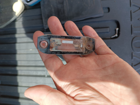 Начал с того, что заменил освещение заднего номера, один родной светильник сгнил напрочь.