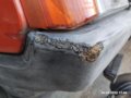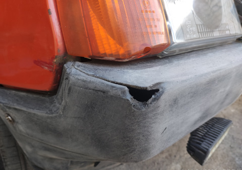 Дырка в бампере заделана, теперь нужно счистить всю старую краску. Снимать бампера я не захотел, потому делал всё на машине углы и скругления я зачищал вручную, большие участки счищал вибрационной шл…