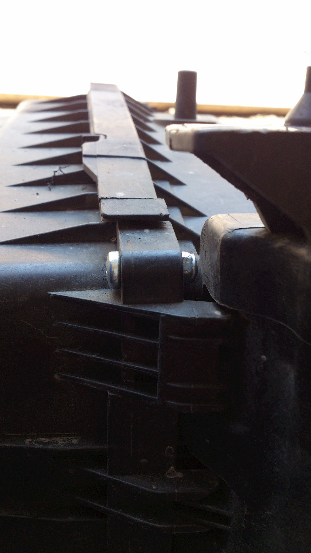 Посмотрел я, кто как выходил из этой проблемы, и сделал как всегда монументально и конкретно. Кто на саморезы скручивает, кто хомутами корпус стягивает (у меня кстати тоже есть стяжка специальная, на липучках и с жесткой пружиной) а я стянул болтами.