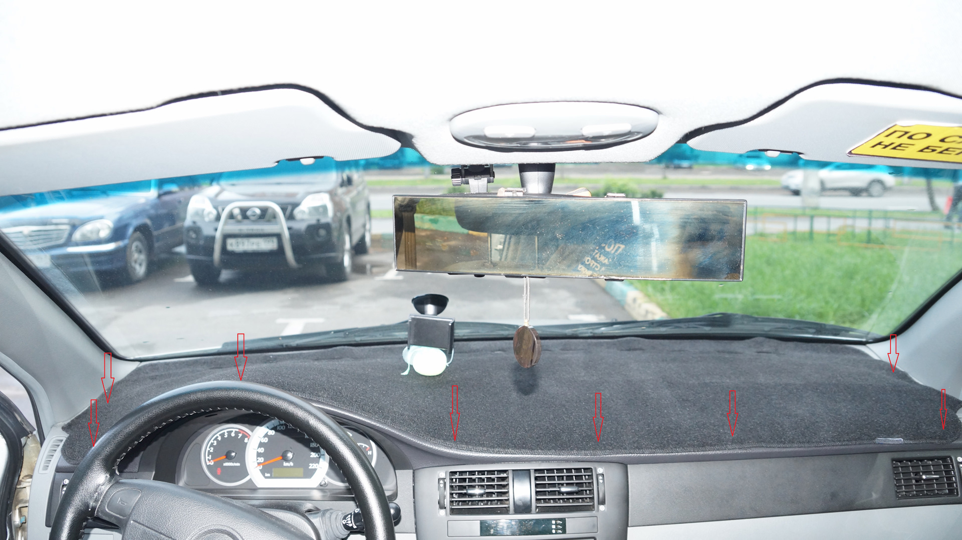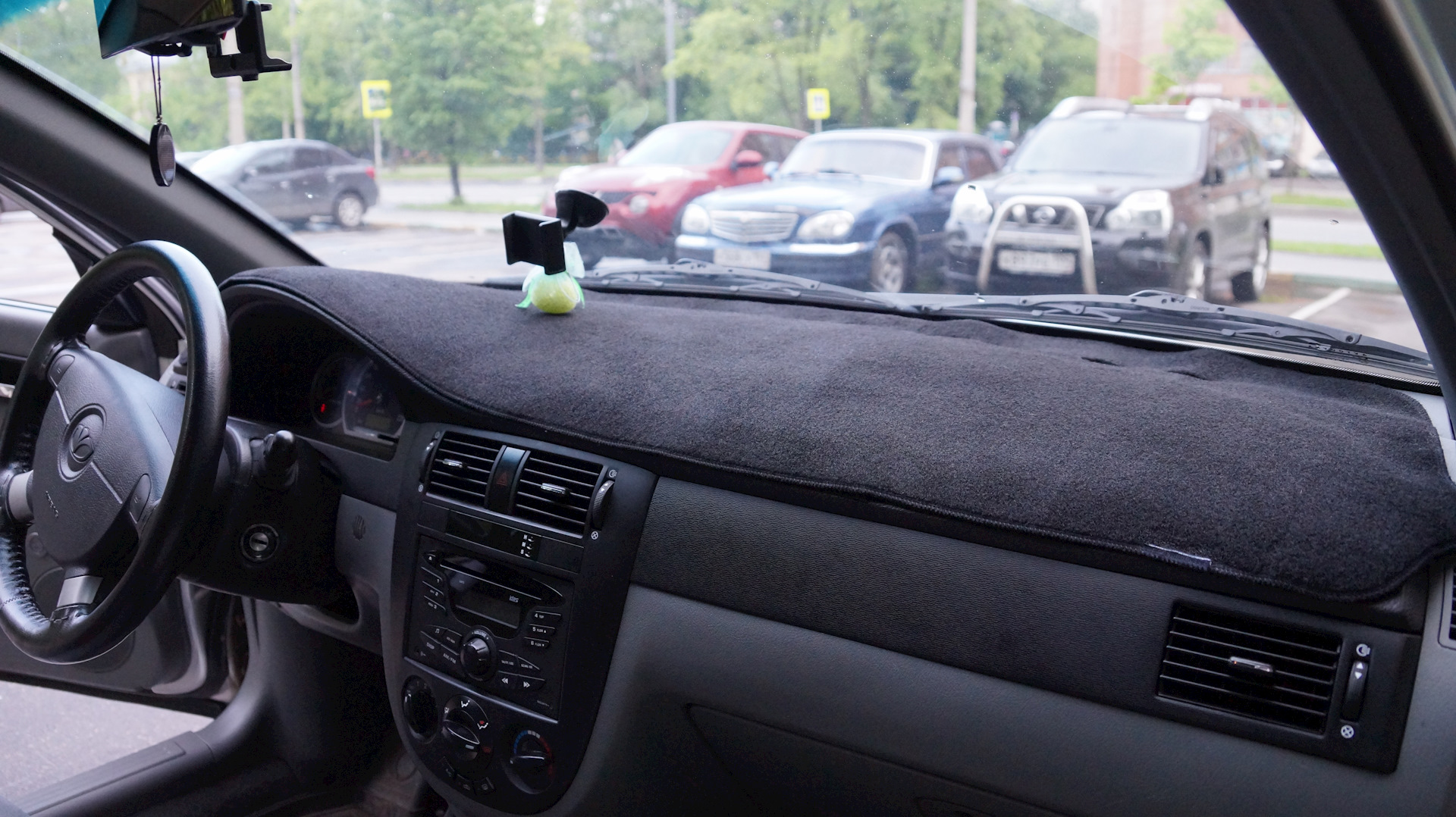 Комплектная липучка качества не ахти. На солнце клей размягчается. При резких прогазовках/торможениях/поворотах может сползать, особенно если на ней что-нибудь лежит. Может приподниматься на сквозняках.