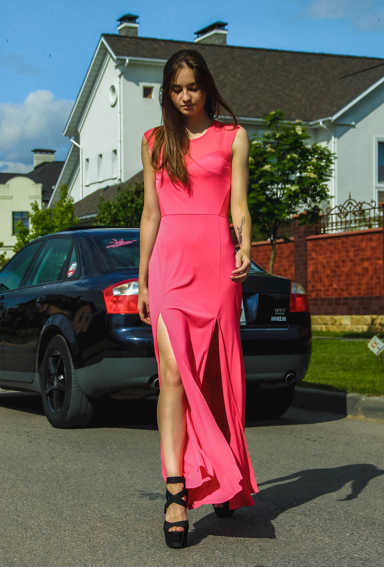 Сначала разглядывал девушку, потом разглядывал дом, а только потом вообще увидел машину)