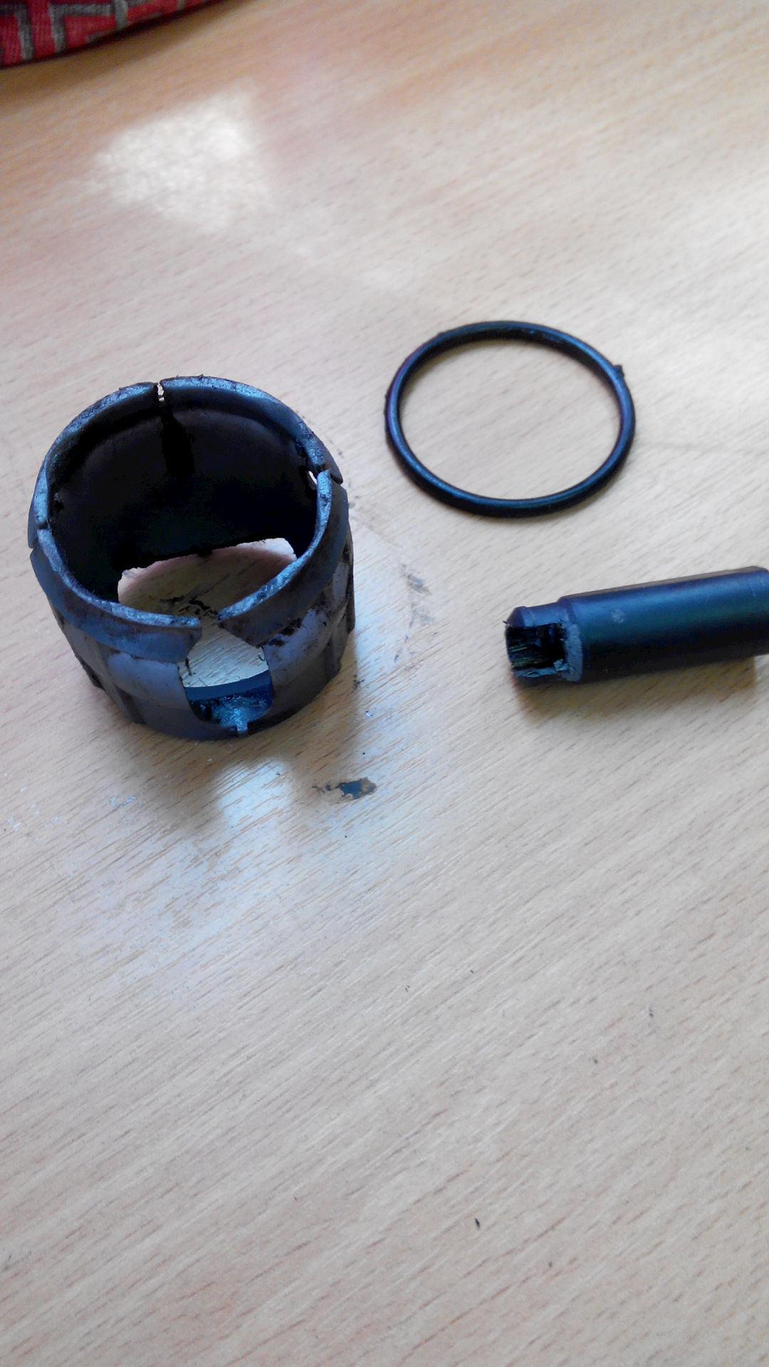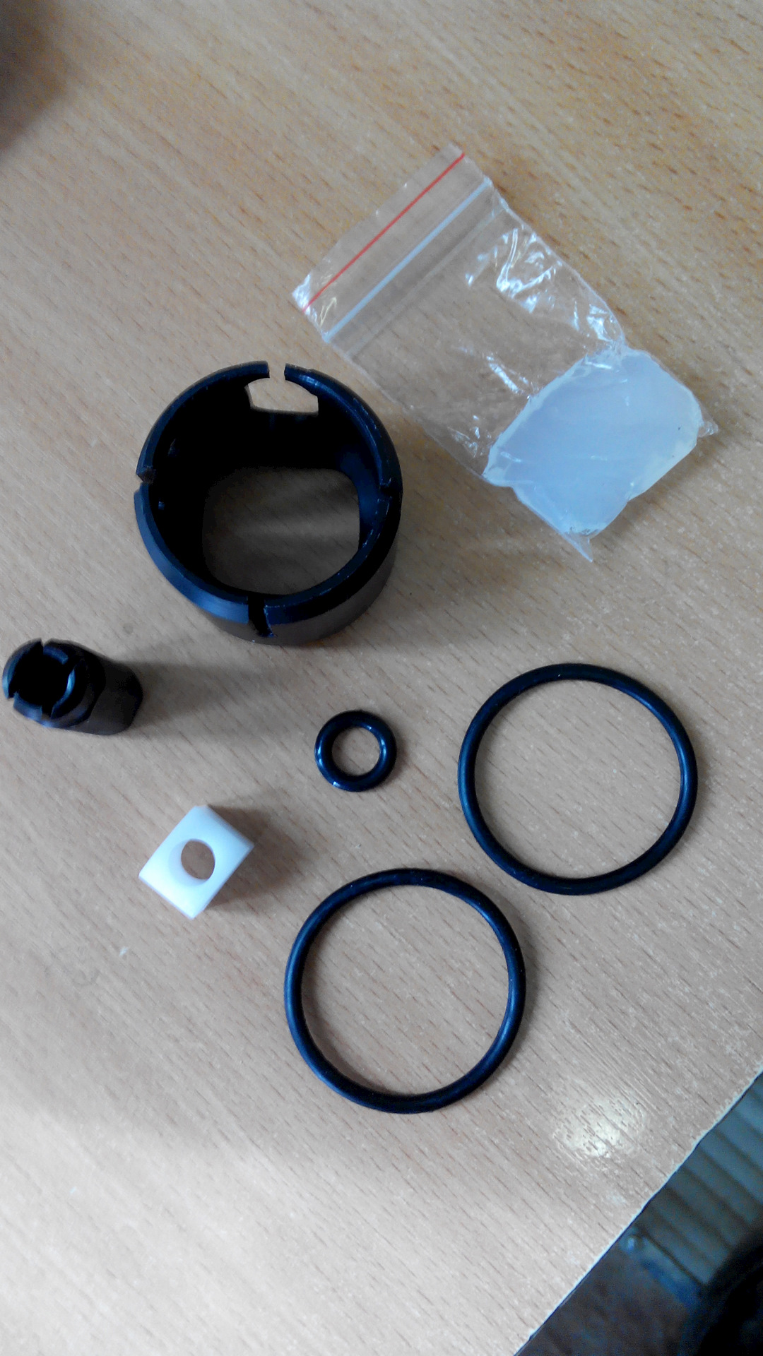 Весь ремкомплект пошел в дело, кроме сухарика. Когда стал чистить посадочное место кулисы обнаружил остатки от прежнего резинового колечка.