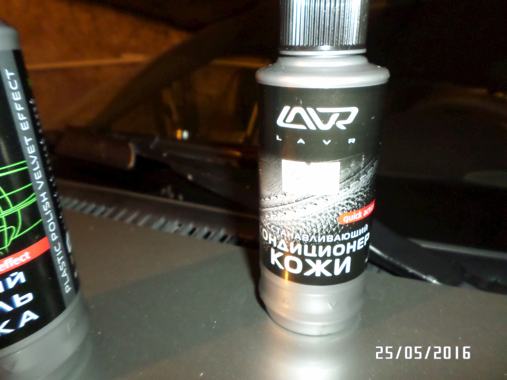 Второе средство которое взял это — восстанавливающий кондиционер кожи. У меня сидения кожаные, вот тоже хочу их обработать. производитель (ЛАВР) говорит, восстанавливает кожу как натуральную так и искусственную. Ну что посмотрим в выходные как он справится. Фото за мной. Спасибо за внимание.