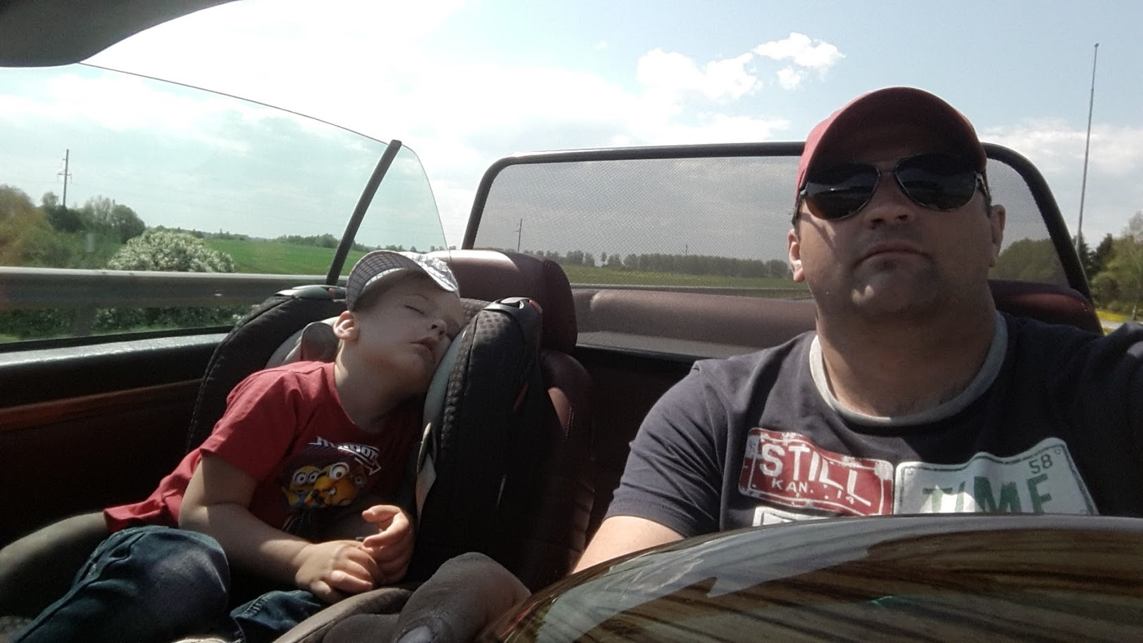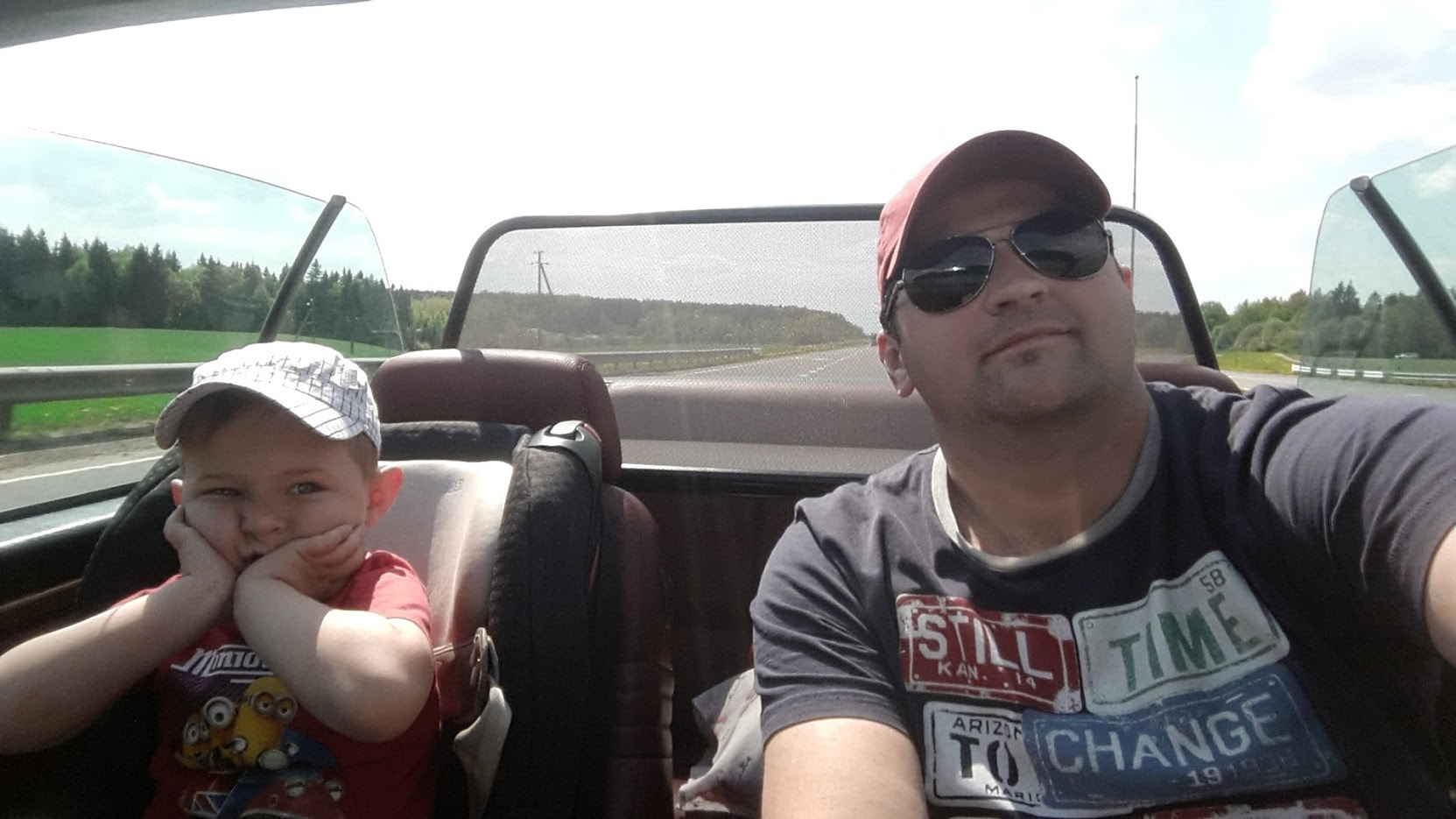 Еще одно наше с сыном достижение — 800км без крыши на обратной дороге. Он впервые едет на такое расстояние. Погода просто шик. Загорели так, как-будто неделю на море провалялись:)