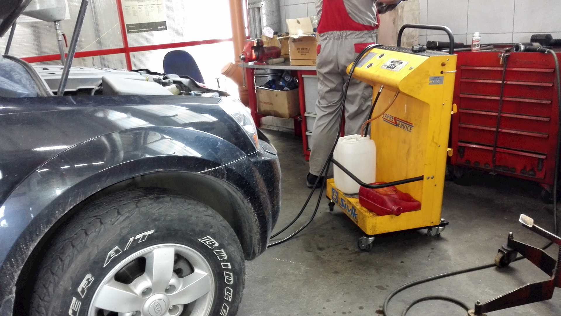 Проблем при замене никаких не возникло, подняли авто на подъемник, присоединили два шланга внизу подкапотного пространства авто и в течении 10 минут произвели замену. Израсходовали 10,5 литров. Пол литра ещё мне и вернули.
