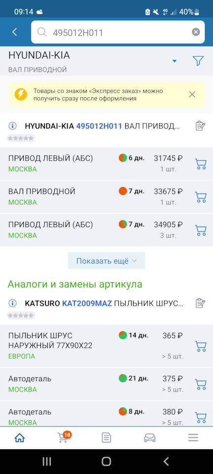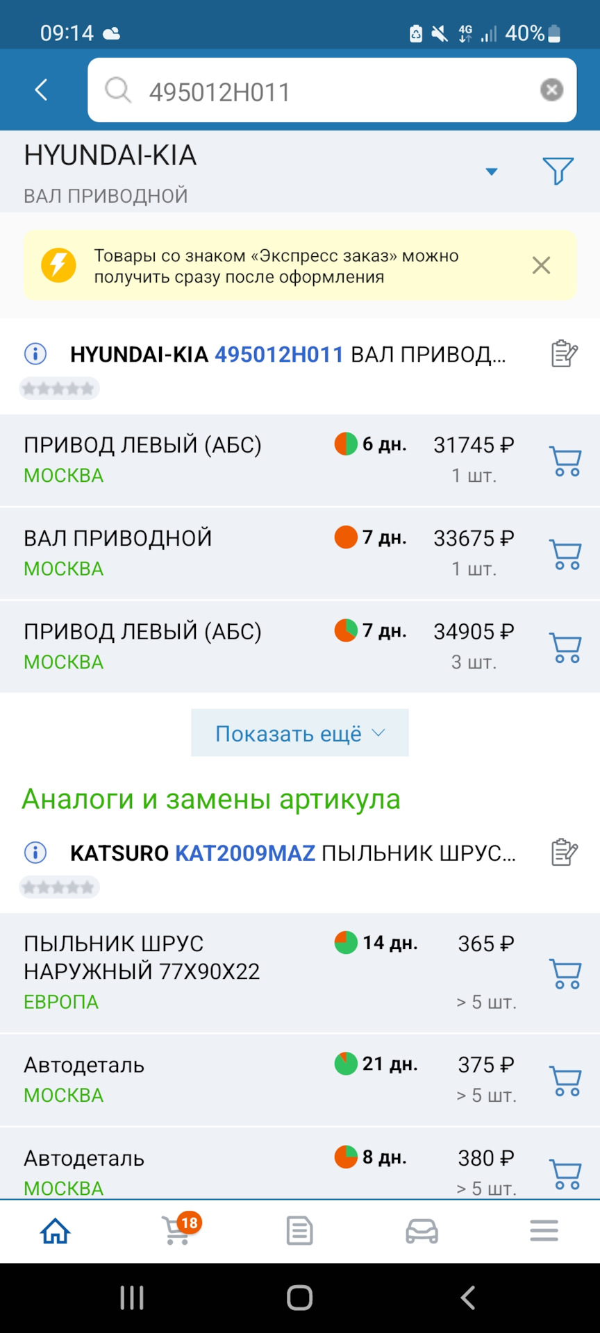 Всем привет, началось все еще года полтора назад завибрировал левый внутренний трипод, был установлен трипод FEBEST хватило его где то на год (20000 км) и опять пошли вибрации при разгоне, но ездить было можно.Этой зимой меняли мне на сервисе пыльник внешнего шруса тож с лева вот запись www.drive2.ru/l/9404065/. Итог захрустел внешний шрус, было принято решение менять палку целиком, так как пара не оригинальных шарниров обошлась бы тысяч в 8-9 руб. А вот тут самое интересное, оригинальный привод от Сида 49501-1H010 стоит 25000-30000 руб. Покапавшись на форумах выяснил что подойдет привод от Элантры 495012H011 его цена 15000 руб. Что мы имеем трипод, палка и шрус разные, палка короче, корпус трипода длиннее, т.е. по отдельности не взаимозаменяемы, а по итогу в сборе одинаковой длинны и абсолютно взаимозаменяемы. Заказал в автодоке, установил, теперь все отлично ни хруста ни вибраций! Результатом доволен.