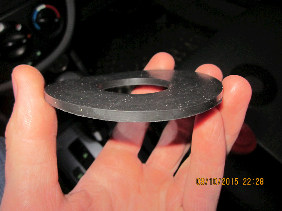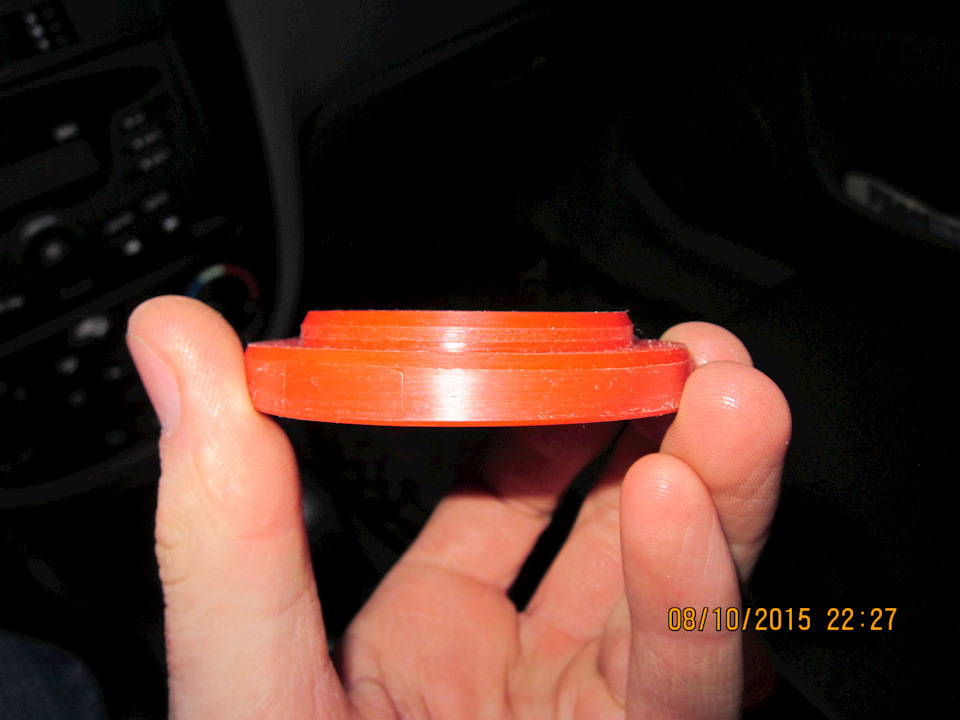 Теперь расскажу немного о кастере, он же «угол продольного наклона оси поворота переднего колеса». Многие так же полагают, что он не регулируется. Действительно, если учесть оригинальную схему крепления верхней опоры амортизационной стойки, трудно представить, как там вообще можно что-то регулировать. Уже не помню, где я вычитал эту инфу (кажись на Лачетти-клубе), но отверстия под штоки амортизаторов в верхних опорах передних стоек выполнены не по центру опор, а с некоторым смещением. Визуально это практически не заметно. Чтобы убедиться в этом, я изготовил самодельные пластиковые оправки, которые плотно вставил в отверстие стакана кузова, при снятых верхних опорных шайбах. Асимметрия небольшая, на глаз всего 1…2мм, но этого достаточно, чтобы точнее выставить кастер. Регулируем так: поддомкрачиваем кузов авто так, чтобы верхняя опора отжалась от стакана кузова и хотя бы чуть-чуть ушла вниз, затем торцовым ключом на 9 проворачиваем опору за шток амортизатора до желаемого положения. После чего опускаем авто с домкрата и смотрим на положение штока амортизатора относительно самодельной оправки, если не устраивает, процедуру повторяем. Затем проделываем аналогичную операцию с другой стороной передней подвески. По завершении устанавливаем верхние опорные шайбы и, удерживая от проворота штоки амортизатора, затягиваем гайки крепления упорных шайб.