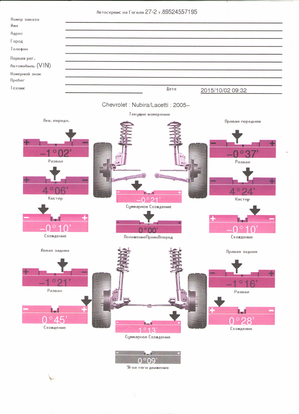 P.S. Регулировку углов установки колёс на стенде мне делали в Сарове, в частном сервисе по адресу ул. Гоголя, д. 27, кв. 2.