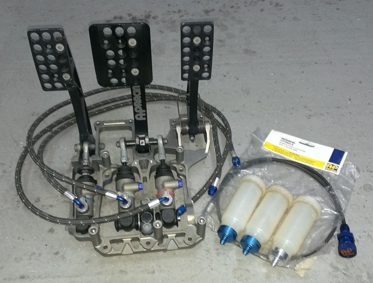 Так вот по случаю распродажи гоночного авто был приобретён педальный узел AP Racing CP5516 и цилиндры AP Racing CP6465. В комплекте также регулятор тормозных усилий (перед-зад), шланги и выносные резервуары.