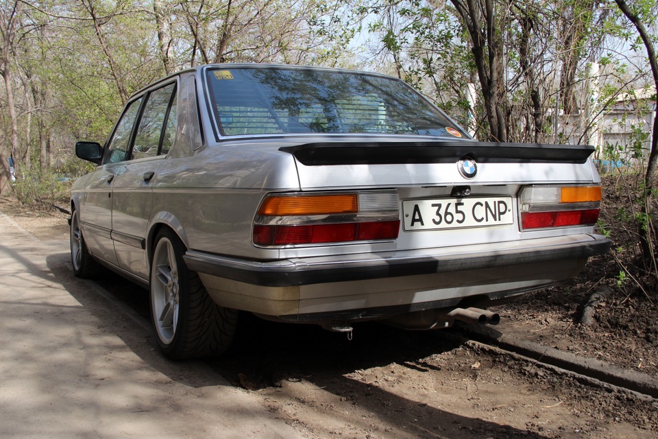 . Разница конечна есть, по сравнению с стандартным . М руль намного удобней держать в руках, расположение спиц расчитано правильно и они не мешают при активно и не только активной езде. Когда отдавал в пошив, то попросил кожу Наппа с простой черной строчкой. Но очень был удивлен когда приехал забирать руль. У него была строчка в триКолоре. как так вышло, это не загадка. Пошивочная по салону просто принадлежит очень хорошему моему другу Расиму Сулиеву. и он мне сделал маленький подарок в виде цветной нитки на моем новом руле. За что ему большое спасибо. Маленький вставыш в виде триКолора на нижней спице руля-уже куплен и где то в пути. как прийдет поставлю. Руль купил без него. ну и еше одна фоточка как машина выглядит сейчас. Фото мотора пока не делал. все в режиме обкатки и настройки после свапа. У нас уже давно тепло, так что я опять на 66 стиле и мне совсем не до Hartge? для них реально нужно выкроить время. Но это уже новый 66 стиль, те я продал еще в 2012 году. Все мира PS--- ну и самое главное прикрутил уже задний спойлер, с ним е28 стала интересней. Ну видно по фото тачка стала по ниже. сзади трудятся Б8 и пружины H&R. а спреди еше сток.