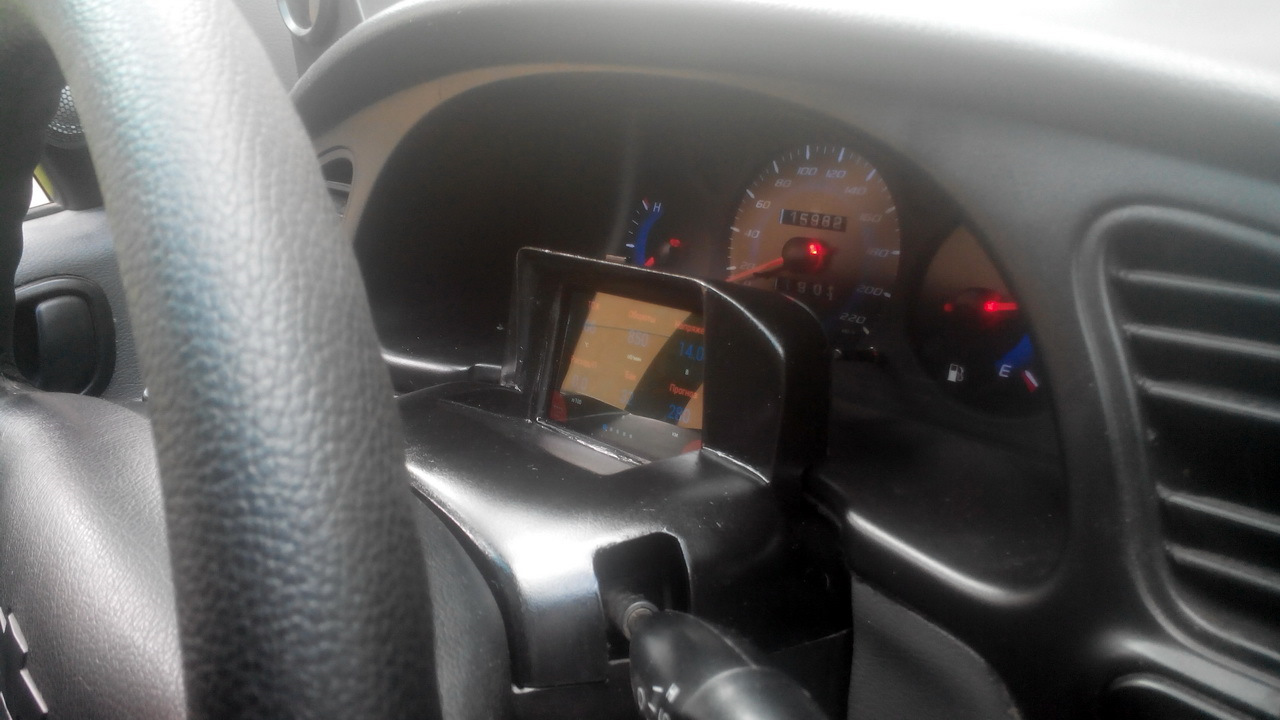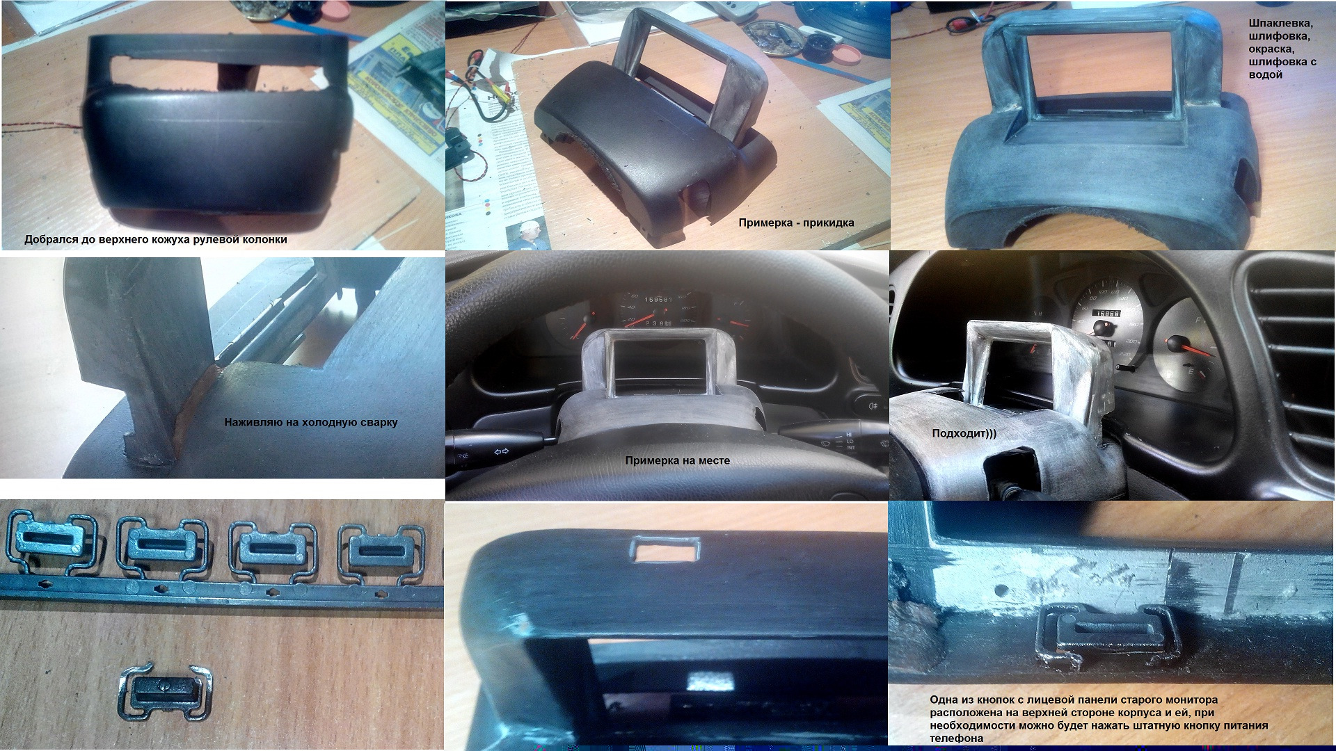 Замечу, что телефон будет внедряться не в нишу приборки, а в край верхнего кожуха рулевой колонки.