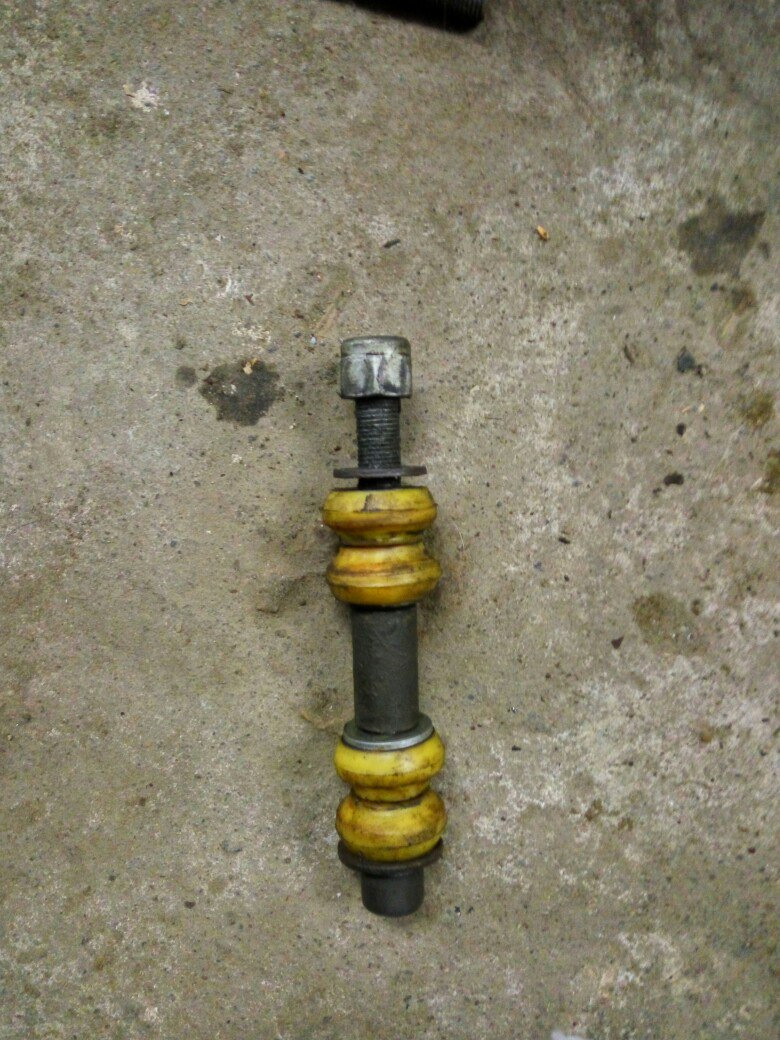 При диагностике у хорошего дядьки было замечено, что почему то стойки стаба повело. в Выходной решил заменить болты. Приобрел 2 болта от ГБЦ(вроде) от Оки (под шестигранник) 2 гайки к ним. Отрезал кусок требы подходящего диаметра и высоты (размер высоты нашел где то в инете 30мм вроде)