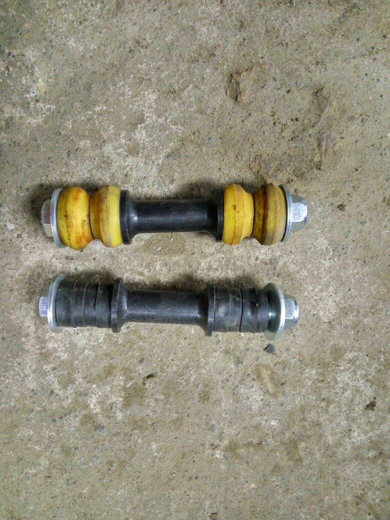 На новой втулки хлипенькие, мягенькие и сделаны рукожопами. При попытке поставить на новый болт полиуретан оказалось, что болт очень сильно короткий и на месте гайку просто не навернуть.