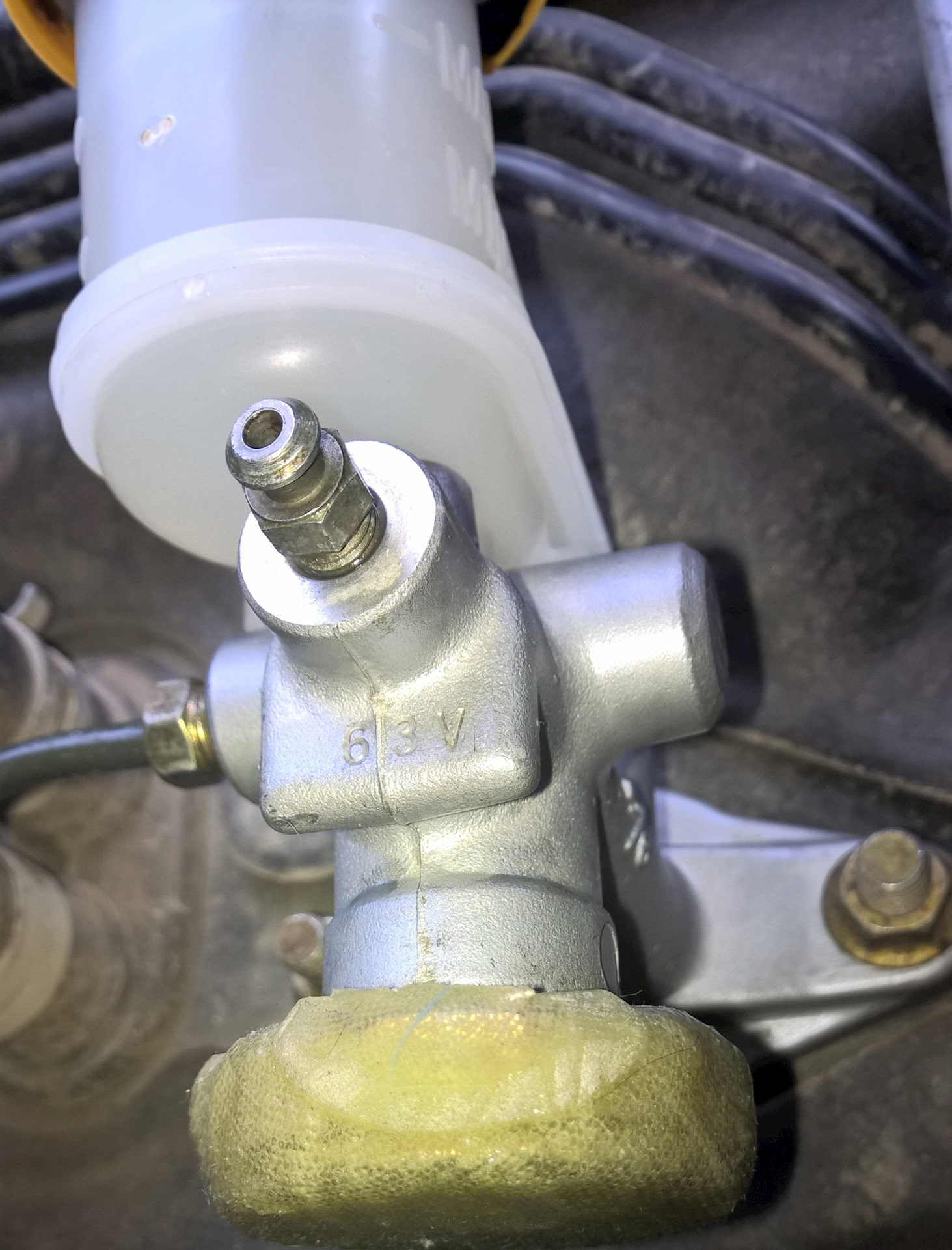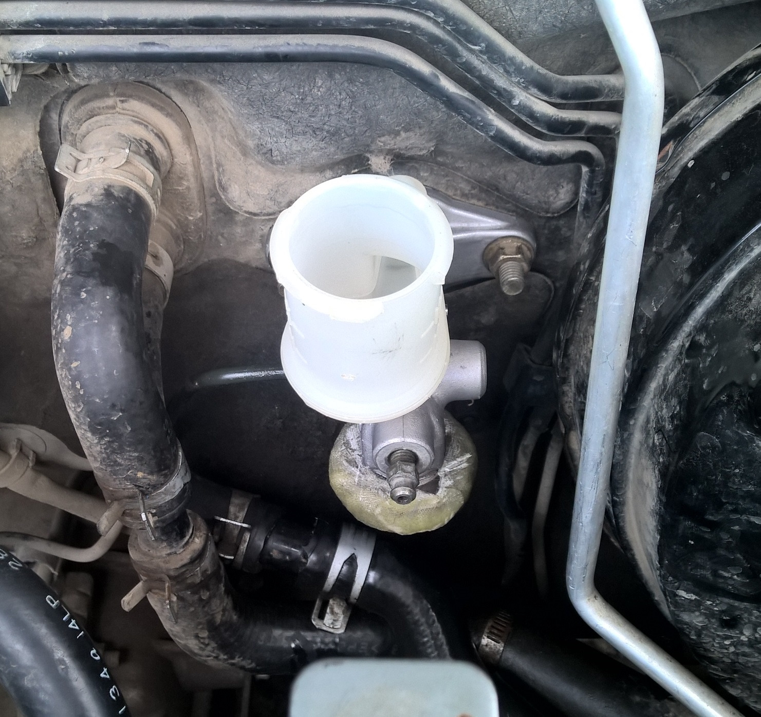 Открутил это чудо инженерной мысли (комментарий автора — какой идиот вообще додумался сделать на машине эту хрень?), сын сбегал в аптеку и купил еще один шприц. Я его в дырдочку — а он не лезет, пришлось носик шприца немного доработать напильником.