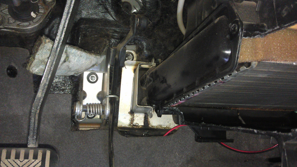 Ещё у кого Е газ нужно демонтировать не только педаль, сам кронштейн. Тормоз не трогаем! При установке нового стараемся защитить пластины от смятия, я тонкую картонку подкладывал в 2 местах. Потренируйтесь на старом отопителе, вынимая и устанавливая, смотрите где и что задевает. И ещё, самое важное. Шпильку затягиваем гайкой в самый последний момент, сперва пластину в салоне + отопитель к корпусу панели. Гайку закручиваем трубным ключом От руки, слабо!, иначе можно сломать пластмассовое крепление в салоне. АвтоВАЗ заложил немного тонкую прокладку, надо на 5 мм больше. Она из очень мягкой резины. Хомуты затягиваются после их чистки от грязи в резьбе и смазки. Затяжка идёт на ощупь, представляя в голове, можно контролировать через левую дырку где рулевая тяга, подсвечивая фонарем. Следим за местом затяжки хомута, расположением головки болта на 8, и отсутствия касания острых кромок хомутов к шлангам и пыльнику рулевой рейки. Работы противопоказаны у кого толстые, неповоротливые пальцы).