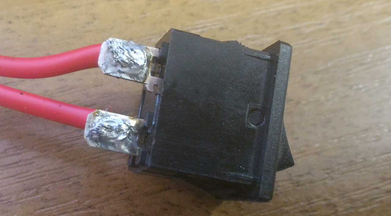 Я взял кнопку со своего сдохшего блока питания ПК, припаял к нему пару проводов.