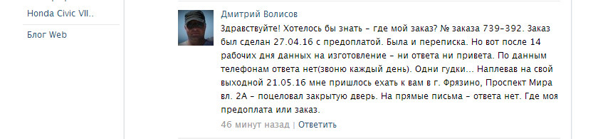 Это самый печальный момент. Я уже писал в блоге небольшую заметку. До сих пор нет ни информации об отправке, ни трек номера. Народ постоянно жалуется. Жалобы постоянно трут.