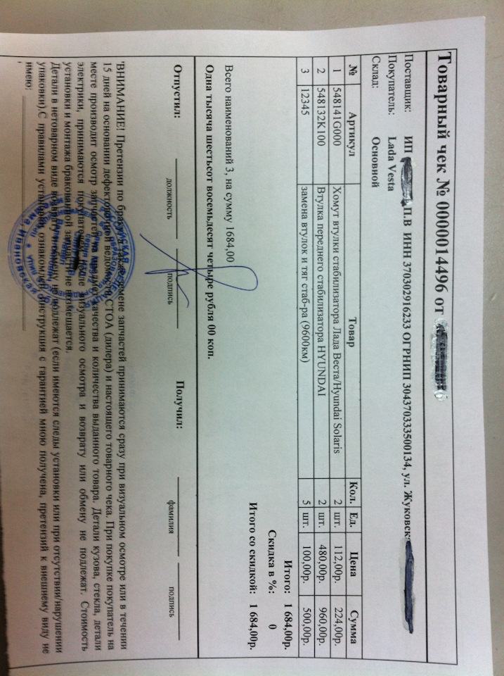 Вот товарный чек, там номера деталей и цена есть