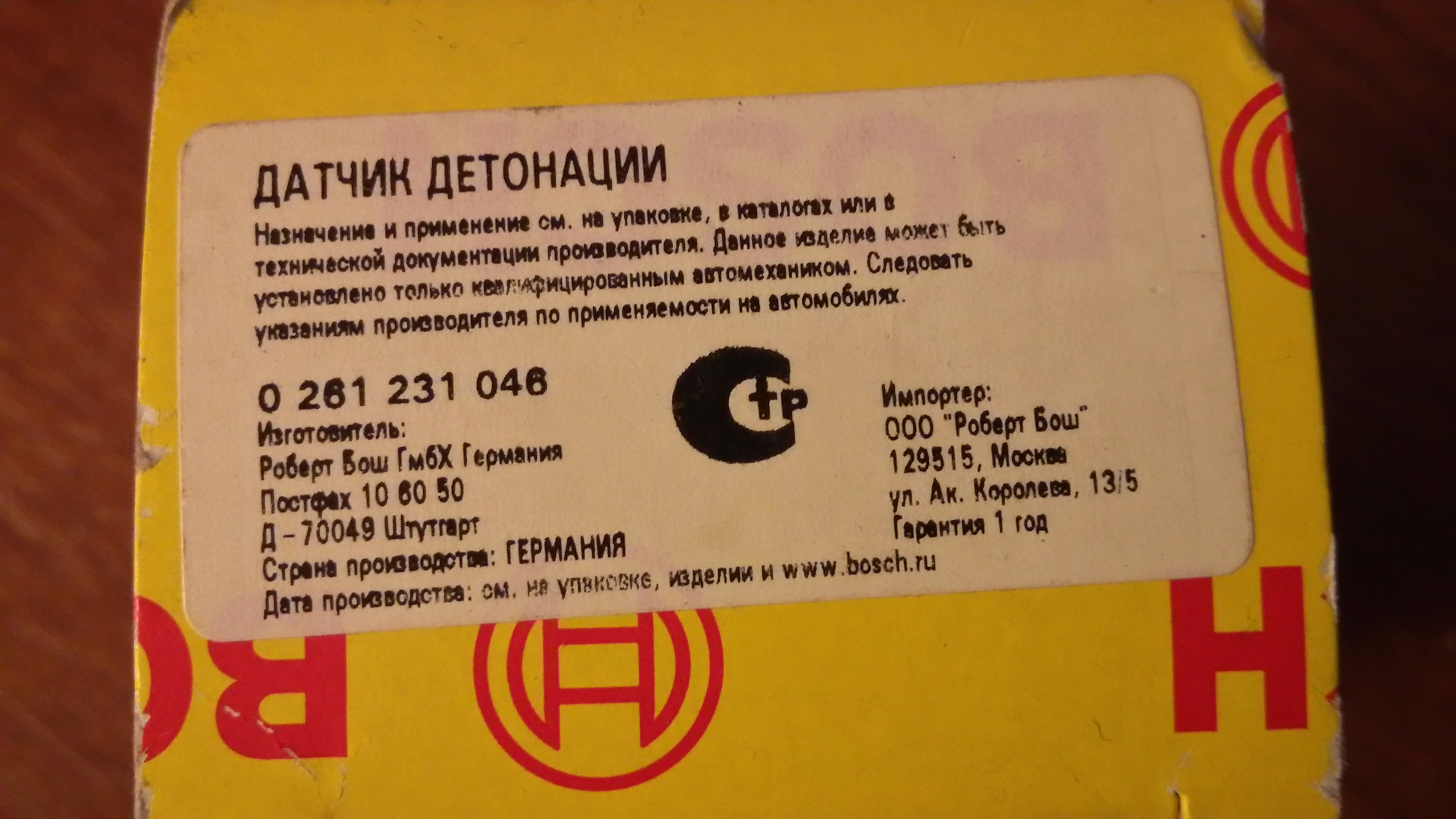 И в магазине автодок нарвался на муляж датчика детонации BOSCH 0 261 231 046