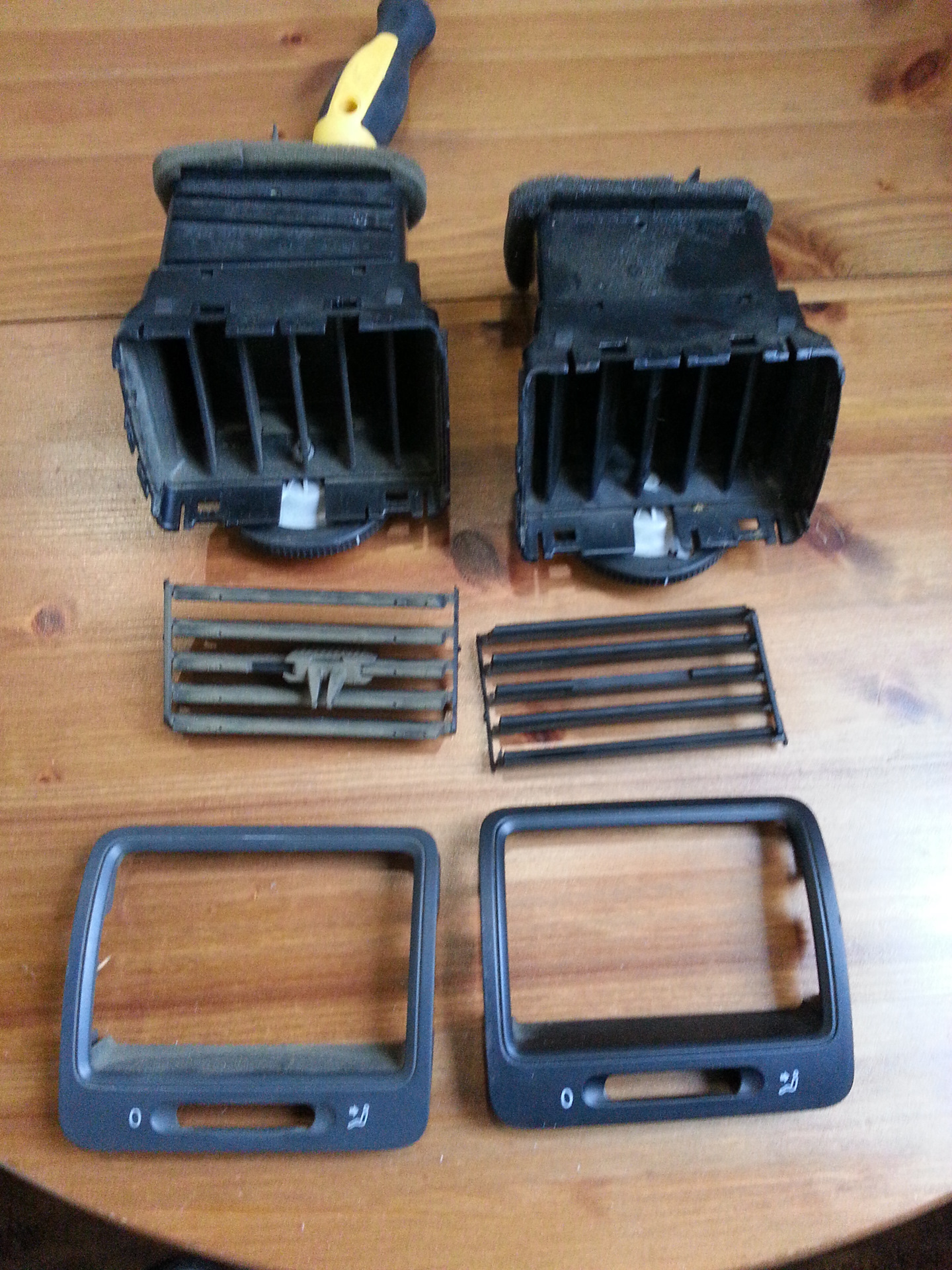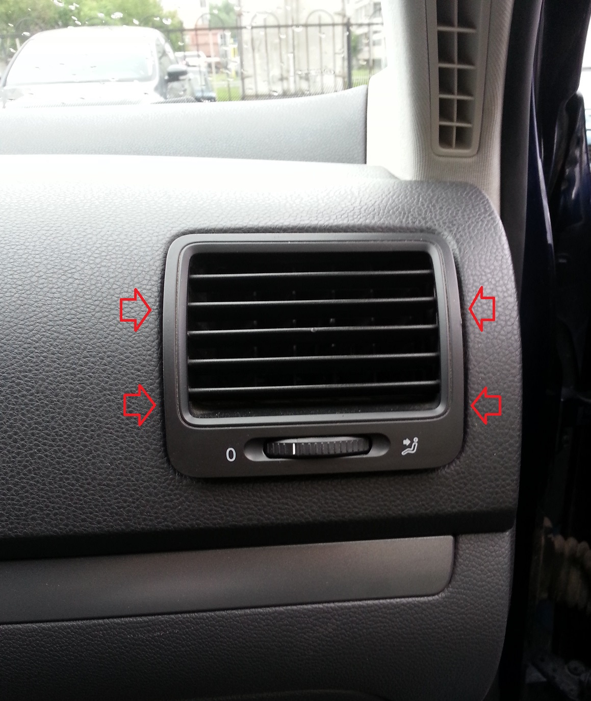 Как уже писал недавно, при покупке машины, не обратил внимание на то, что сломан регулятор направления воздушного потока у правого дефлектора воздуховода.