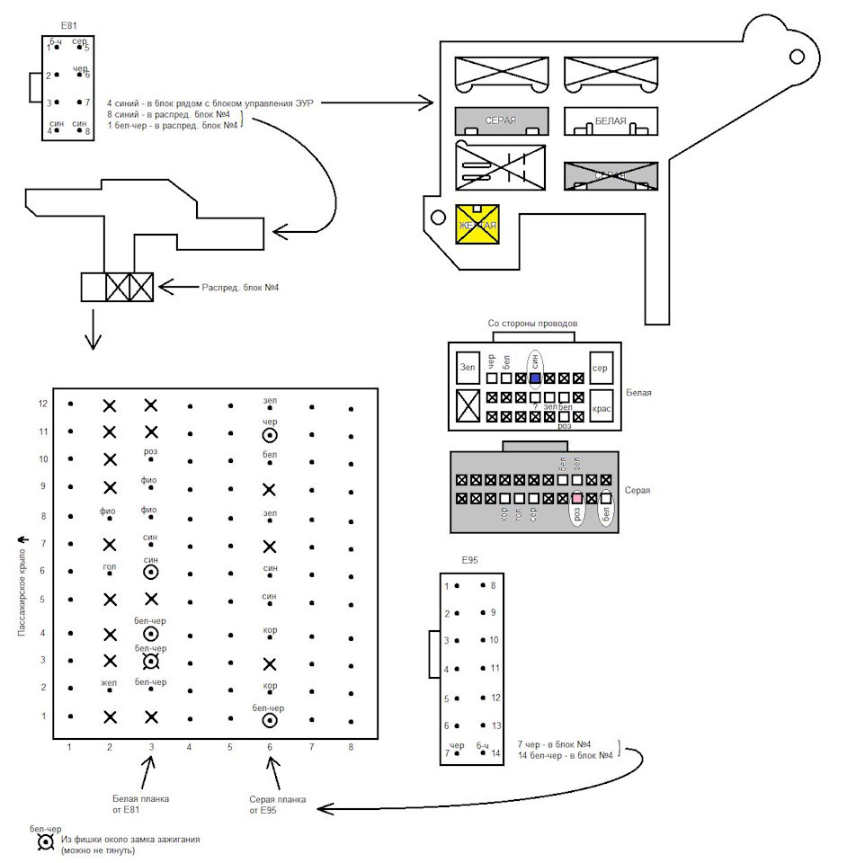 Т.е. с разъемов е81 и е95 на селекторе тянем по два провода к распределительному блоку №3.