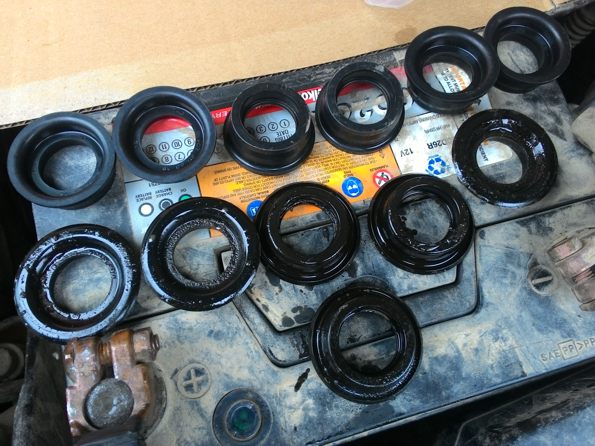 Да, всё верно — часть промыл, проверил, что они нормальные — и поставил обратно. Часть выкинул и поставил новые. Если у них пружинка работает, если их удалось хорошо промыть (и они держат масло), если у них не испорчены посадочные (на фото видно, что с ними может быть) — то они вполне ещё рабочие.