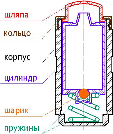 Затем опускаем гидрик в баночку «кнопкой» вниз, вставляем проволочку и нажимаем на шарик внутри.