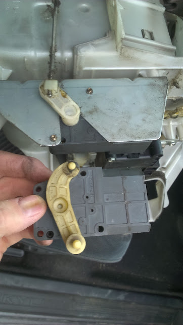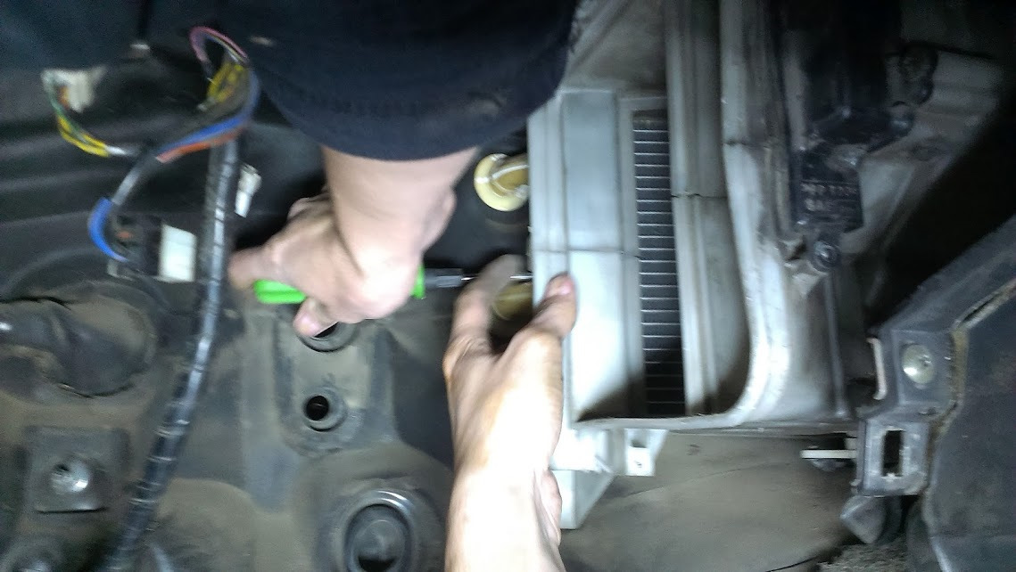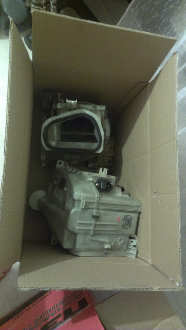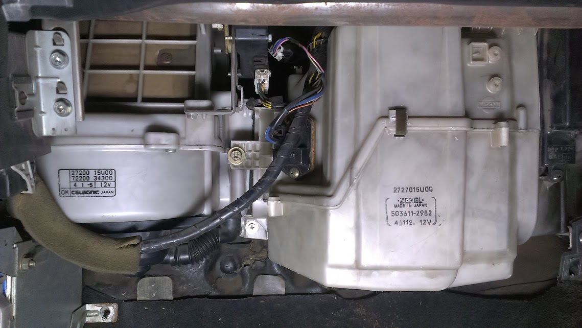 Кто не в курсе, печка в Скаях состоит из трёх частей: под бардачком в ногах пассажира расположены вентилятор, радиатор кондиционера и под центральной консолью радиатор печки с замысловатым механизмом заслонок.