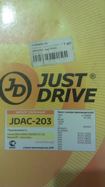 Фильтр салонный Just Drive JDAC203 (короткий) — 183руб