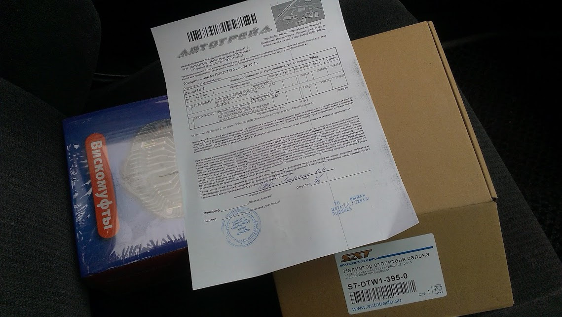 Был найден новый радиатор отопителя от производителя SAT по очень гуманной цене. Вместе с ним купил новую вискомуфту взамен уставшей родной.