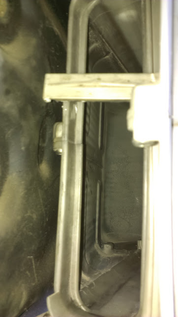 В той части, где расположен радиатор кондиционера, делаем прорезь в любезно подготовленных производителем местах. Я использовал пилку по металлу и канцелярский нож.
