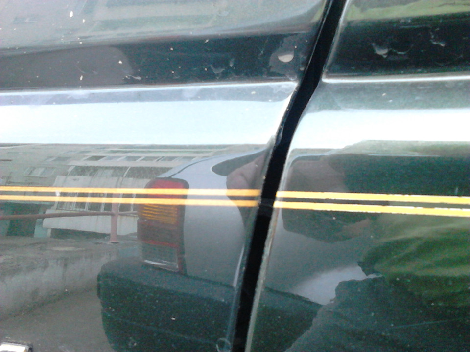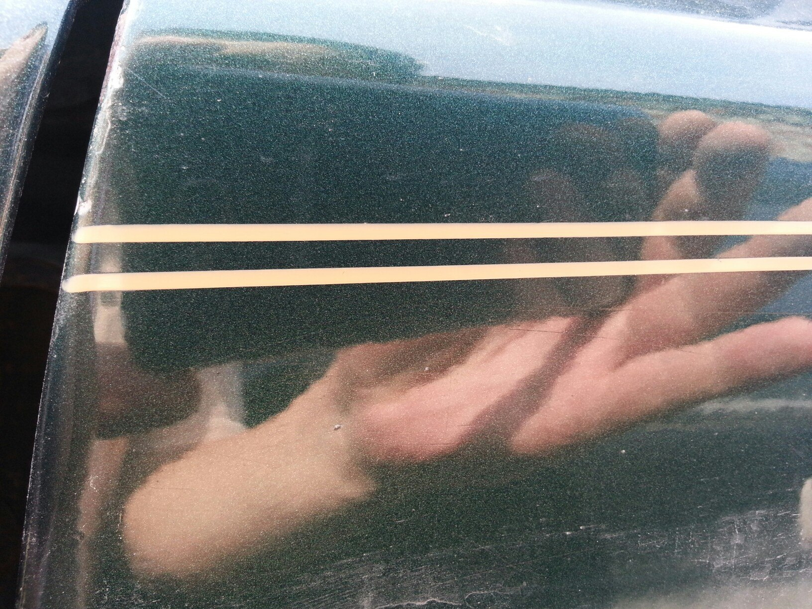 Мне похоже через малярный скотч сделали ( не присутствовал), немного по виду отличаются потому что под лаком, а родные нет. Левое крыло — новые, остальные "старые". Ленту покупать не стали — 1,5 рубля стоит!